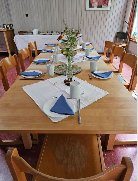 Hinter dem Gästehaus befindet sich die Terrasse mit Gartenmöbeln, Liegen, eine Campingwiese, ein eigener BASKETBALLPLATZ und eine große Feuerstelle, auch lauschige Plätzchen im Grünen. Wenn Sie die wunderschöne Natur um uns intensiver erleben möchten, einfach anfragen, wann bei uns WALDBADEN stattfindet. YOGA und SINGEN steht auch an einigen Tagen in unserem Veranstaltungsprogramm. Das HALLENBAD der Gemeinde Gomadingen bietet ebenso SAUNA, Sie können es in ca. 100 m erreichen Am besten vorher erkundigen, ob es während des Aufenthalts geöffnet hat. Neben unserem Grundstück befinden sich TENNISPLÄTZE, zu denen man beim dortigen Verein Gastspielmarken erwerben kann. Im Dorf hat es einen FAHRRADVERLEIH. Neben dem Rathaus befindet sich eine LADESTATION FÜR ELEKTROFAHRZEUGE. In der Dorfmitte von Gomadingen liegt ein Dorfteich, gespeist durch die Lauter, mit SPIELPLATZ. Es gibt Stellen, an denen man in der Lauter BADEN kann. |