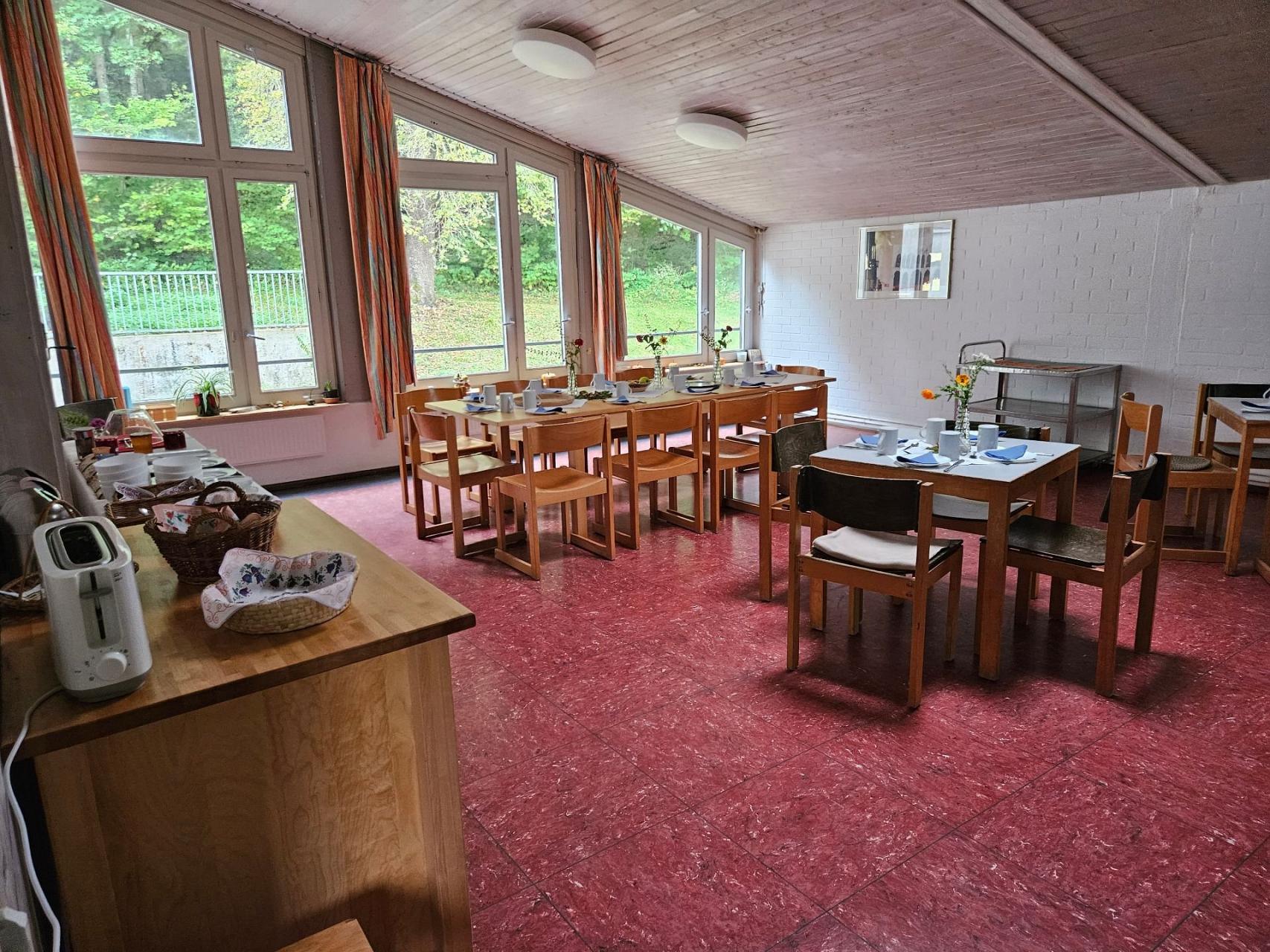 Hinter dem Gästehaus befindet sich die Terrasse mit Gartenmöbeln, Liegen, eine Campingwiese, ein eigener BASKETBALLPLATZ und eine große Feuerstelle, auch lauschige Plätzchen im Grünen. Wenn Sie die wunderschöne Natur um uns intensiver erleben möchten, einfach anfragen, wann bei uns WALDBADEN stattfindet. YOGA und SINGEN steht auch an einigen Tagen in unserem Veranstaltungsprogramm. Das HALLENBAD der Gemeinde Gomadingen bietet ebenso SAUNA, Sie können es in ca. 100 m erreichen Am besten vorher erkundigen, ob es während des Aufenthalts geöffnet hat. Neben unserem Grundstück befinden sich TENNISPLÄTZE, zu denen man beim dortigen Verein Gastspielmarken erwerben kann. Im Dorf hat es einen FAHRRADVERLEIH. Neben dem Rathaus befindet sich eine LADESTATION FÜR ELEKTROFAHRZEUGE. In der Dorfmitte von Gomadingen liegt ein Dorfteich, gespeist durch die Lauter, mit SPIELPLATZ. Es gibt Stellen, an denen man in der Lauter BADEN kann. |