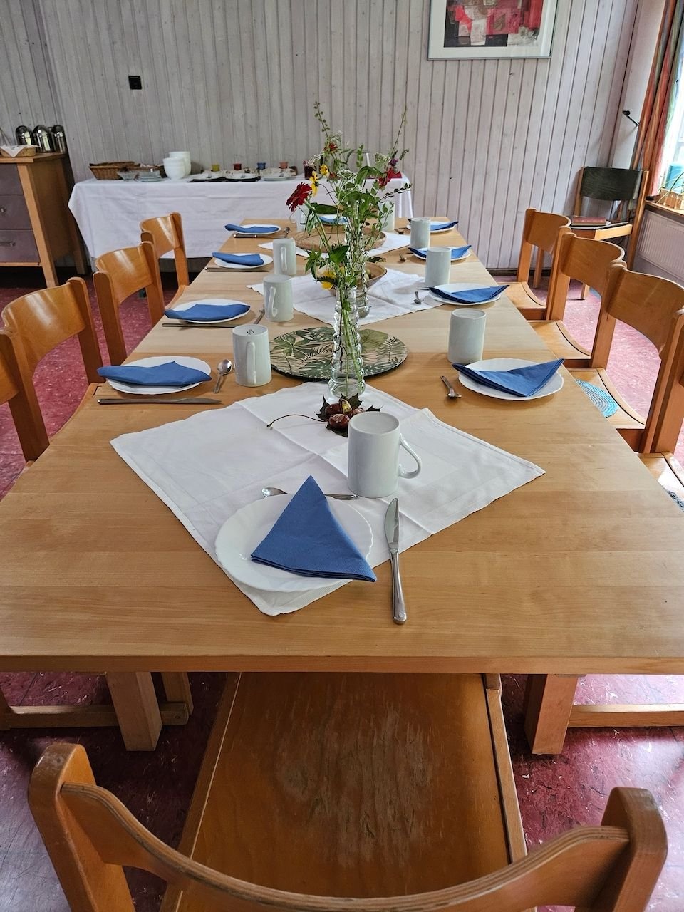 Hinter dem Gästehaus befindet sich die Terrasse mit Gartenmöbeln, Liegen, eine Campingwiese, ein eigener BASKETBALLPLATZ und eine große Feuerstelle, auch lauschige Plätzchen im Grünen. Wenn Sie die wunderschöne Natur um uns intensiver erleben möchten, einfach anfragen, wann bei uns WALDBADEN stattfindet. YOGA und SINGEN steht auch an einigen Tagen in unserem Veranstaltungsprogramm. Das HALLENBAD der Gemeinde Gomadingen bietet ebenso SAUNA, Sie können es in ca. 100 m erreichen Am besten vorher erkundigen, ob es während des Aufenthalts geöffnet hat. Neben unserem Grundstück befinden sich TENNISPLÄTZE, zu denen man beim dortigen Verein Gastspielmarken erwerben kann. Im Dorf hat es einen FAHRRADVERLEIH. Neben dem Rathaus befindet sich eine LADESTATION FÜR ELEKTROFAHRZEUGE. In der Dorfmitte von Gomadingen liegt ein Dorfteich, gespeist durch die Lauter, mit SPIELPLATZ. Es gibt Stellen, an denen man in der Lauter BADEN kann. |