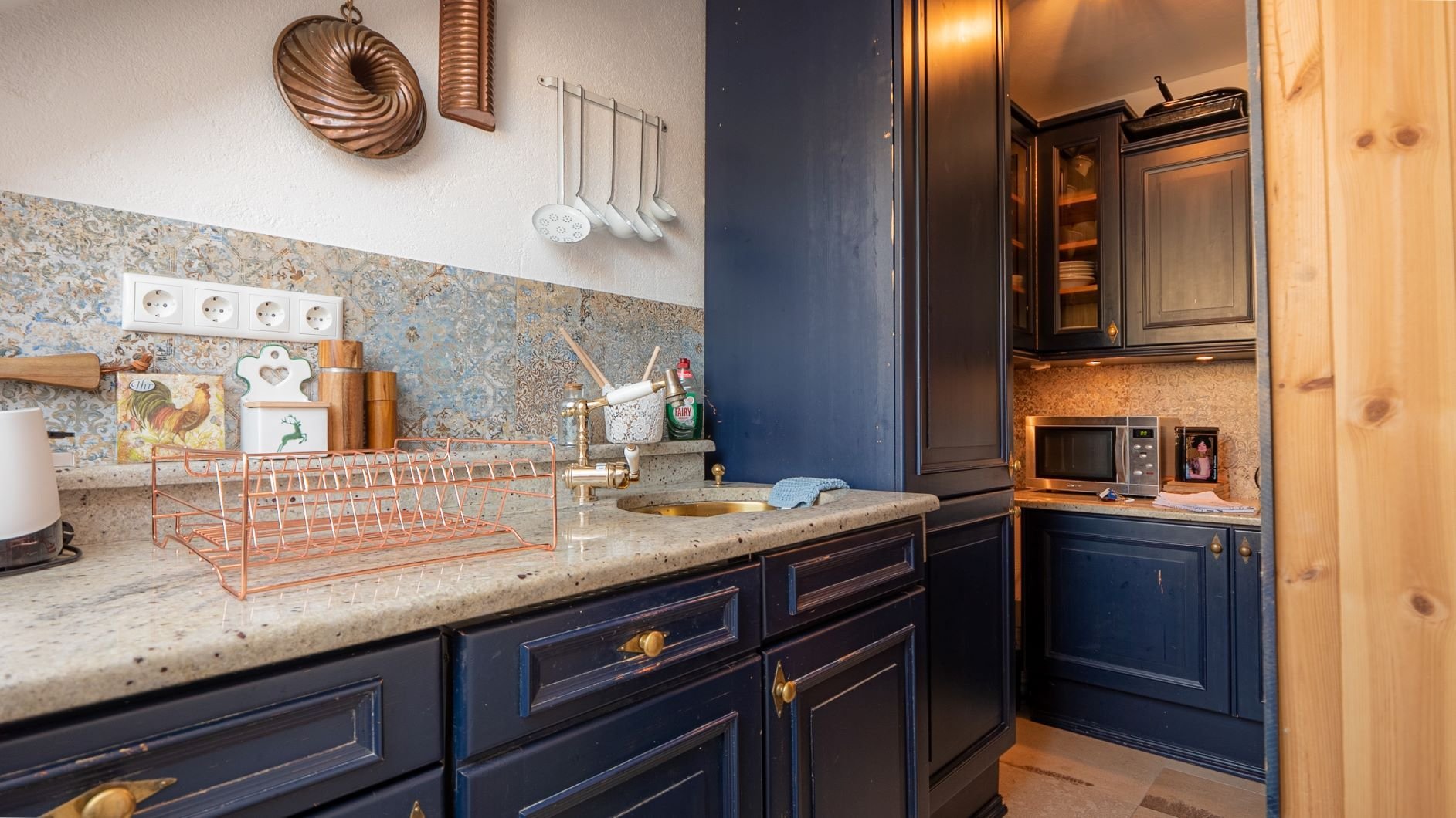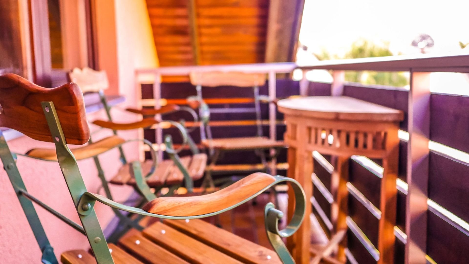 | Die Wohnung selbst: Sie befindet sich in der ersten Etage eines 1985 erstellten Massivbaus. Die Maisonette-Wohnung erstreckt sich auf zwei Ebenen. Eine Wendeltreppe führt Sie in die oberen Bereiche der Wohnung. Das Wohnzimmer in der unteren Ebene verfügt über einen Balkon nach Westen (Abendsonne). Esszimmer und Küche sowie WC finden Sie hier ebenfalls. Wir haben auf eine gemütliche und hochwertige Einrichtung geachtet. Eine Stressless-Couch im Wohnzimmer, eine Küche der Marke Domicil (Made in Germany), eine Essecke von Voglauer, Teakholzmöbel auf dem Balkon. Der in der gesamten Wohnung verlegte Natursteinboden bringt vor allem in den heißen Sommermonaten die nötige Abkühlung. In der oberen Ebene finden Sie die drei wunderschönen Schlafräume mit jeweils zwei Massivholzbetten. Eines davon ein Himmelbett. Dabei legen wir Wert auf eine gehobene Schlaf-Kultur: Qualitäts-Matratzen eines deutschen Herstellers, Daunen-Sommer-Betten mit pommerschen Daunen (deutsches Fabrikat). Die für Sie bereitgestellte Bettwäsche der Firma Bauer aus Thüringen – ist selbstverständlich in Naturfaser. Ebenfalls in der zweiten Etage befindet sich ein großes Badezimmer mit Fenster. Auch das Badezimmer haben wir neu in Naturstein eingekleidet. Hier bleiben keine Wünsche offen - 1 x Badewanne - 1 x Dusche - 1 x WC - 1 x Waschbecken - 1 X Bidet Als weiteres Highlight bietet eines der Schlafzimmer einen Südbalkon (den ganzen Tag Sonne) mit Blick in einen idyllisch angelegten Garten. Dieser Platz bietet, dank der Überdachung, auch an regnerischen Tagen einen Platz im Freien. Sind weitere Fragen aufgekommen? Wir beantworten Sie gerne! |