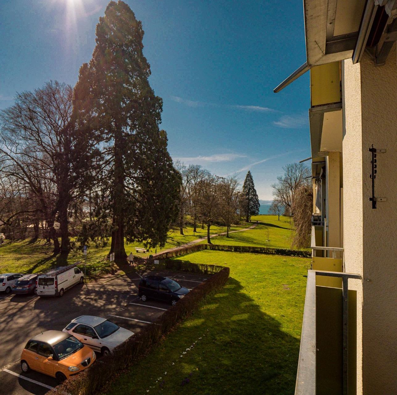 Vom Balkon blicken Sie auf den Bodensee und den Lotzbek- Park mit altem Baumbestand sowie auf die Berge der Alpenkette.