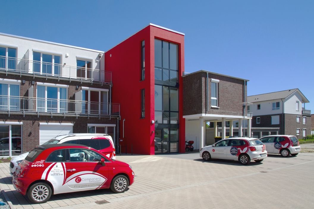 The Weyhe guest room is located in the Mühlenquartier Bassum, an assisted living service with 41 apartments spread over three floors in a spacious building complex. Within the building there is also day care, the COMPANERO outpatient care service, common rooms and the restaurant, which provides the tenants and of course also the guests with breakfast and other meals.