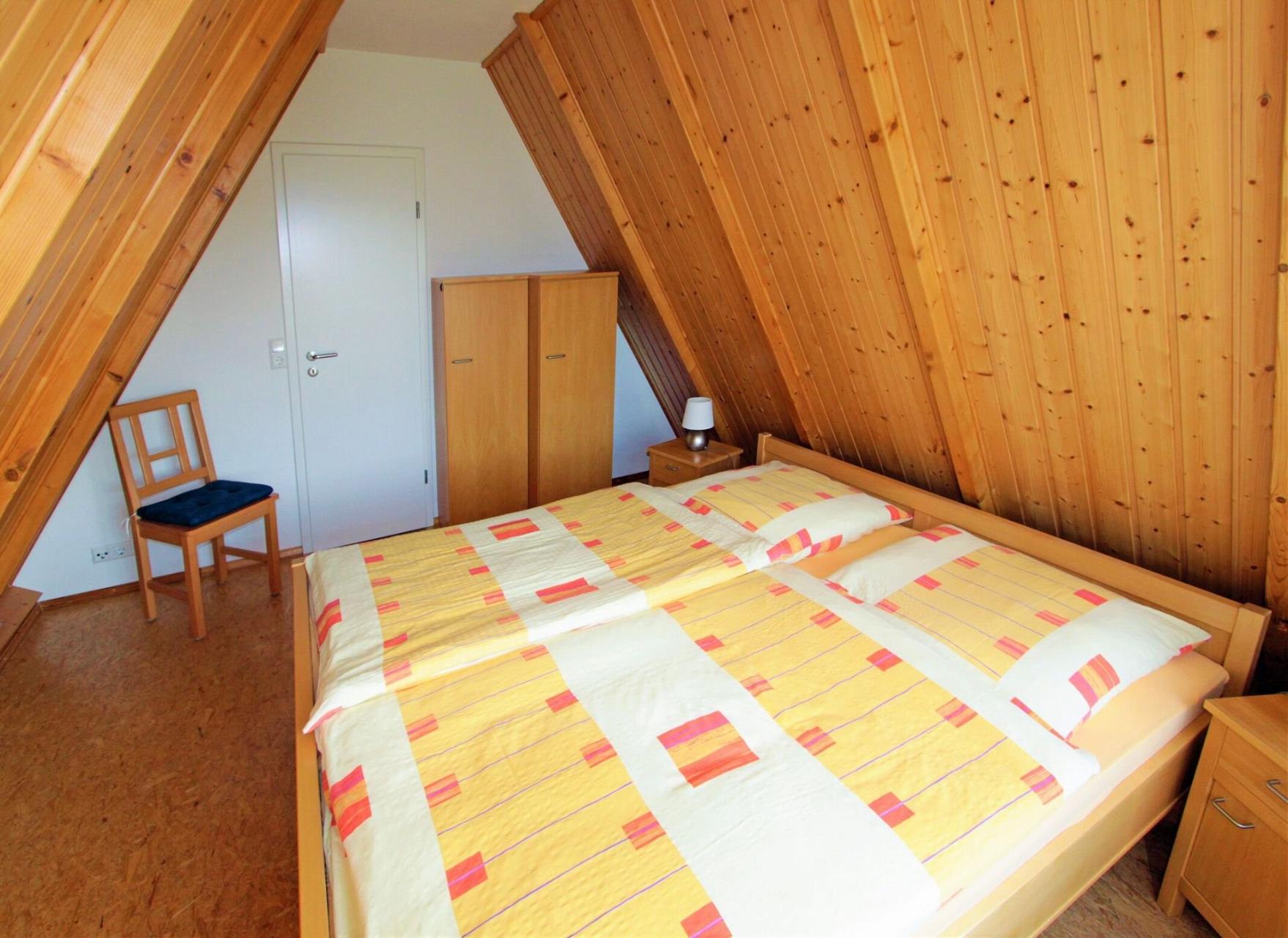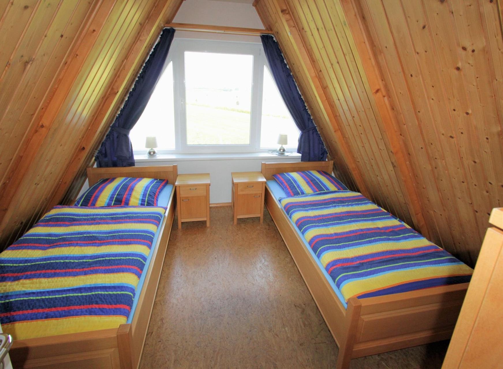 Ins Obergeschoss führt eine gerade Treppe. Dort befinden sich zwei Schlafräume: