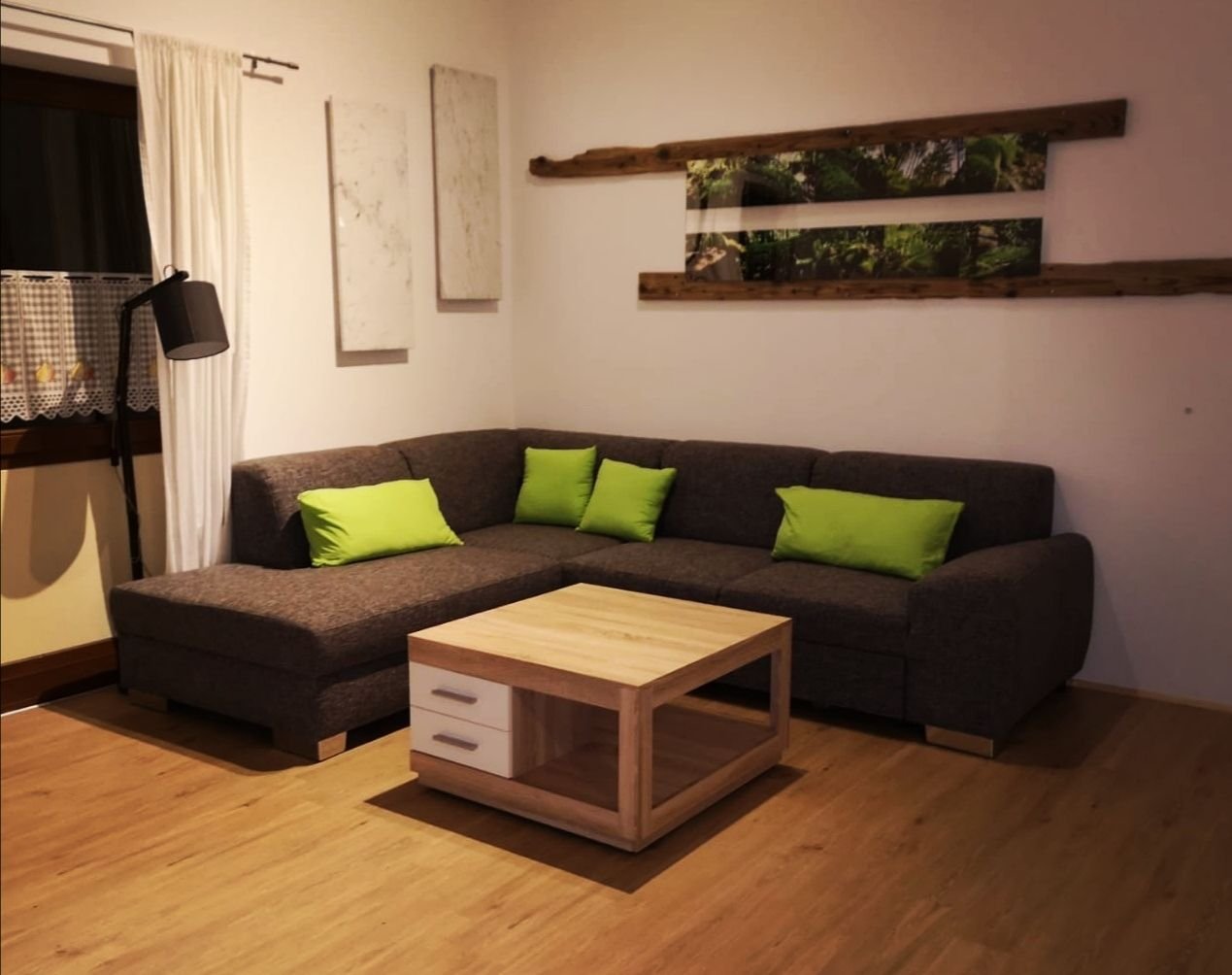 Gemütlicher Wohnraum mit Essbereich, Doppelbettcouch und z.T. Kamin