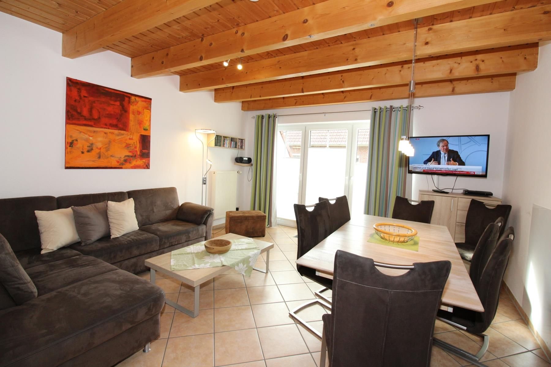 Sofa Garnitur, SAT-TV, HiFi-Anlage und separatem Essplatz