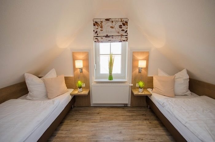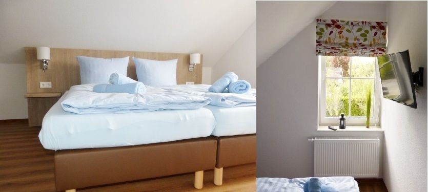 1 Schlafzimmer mit zwei getrennten Betten oder drei Betten ( Belegung bis 5 Personen)