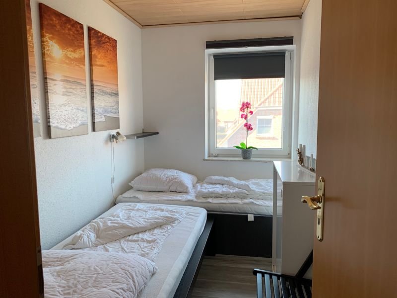 Schlafzimmer entweder mit einem Einzelbett, zwei getrennten Betten oder Etagenbett