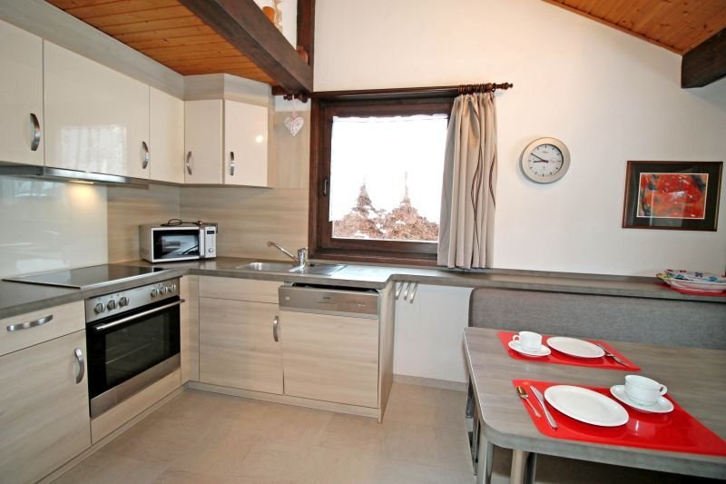 Voll ausgestatteter Küchenbereich mit Kühlschrank, Mikrowelle, Herd und Backofen, Wasserkocher, Filter-Kaffeemaschine und Spülmaschine