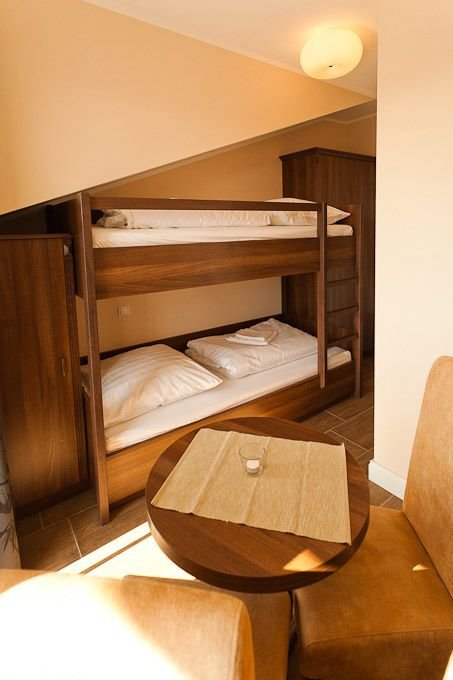 1 Schlafzimmer mit getrennten Betten (Typ D) oder Etagenbett (Typ C), LCD-TV und Bettwäsche