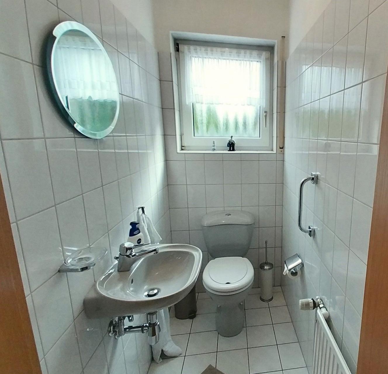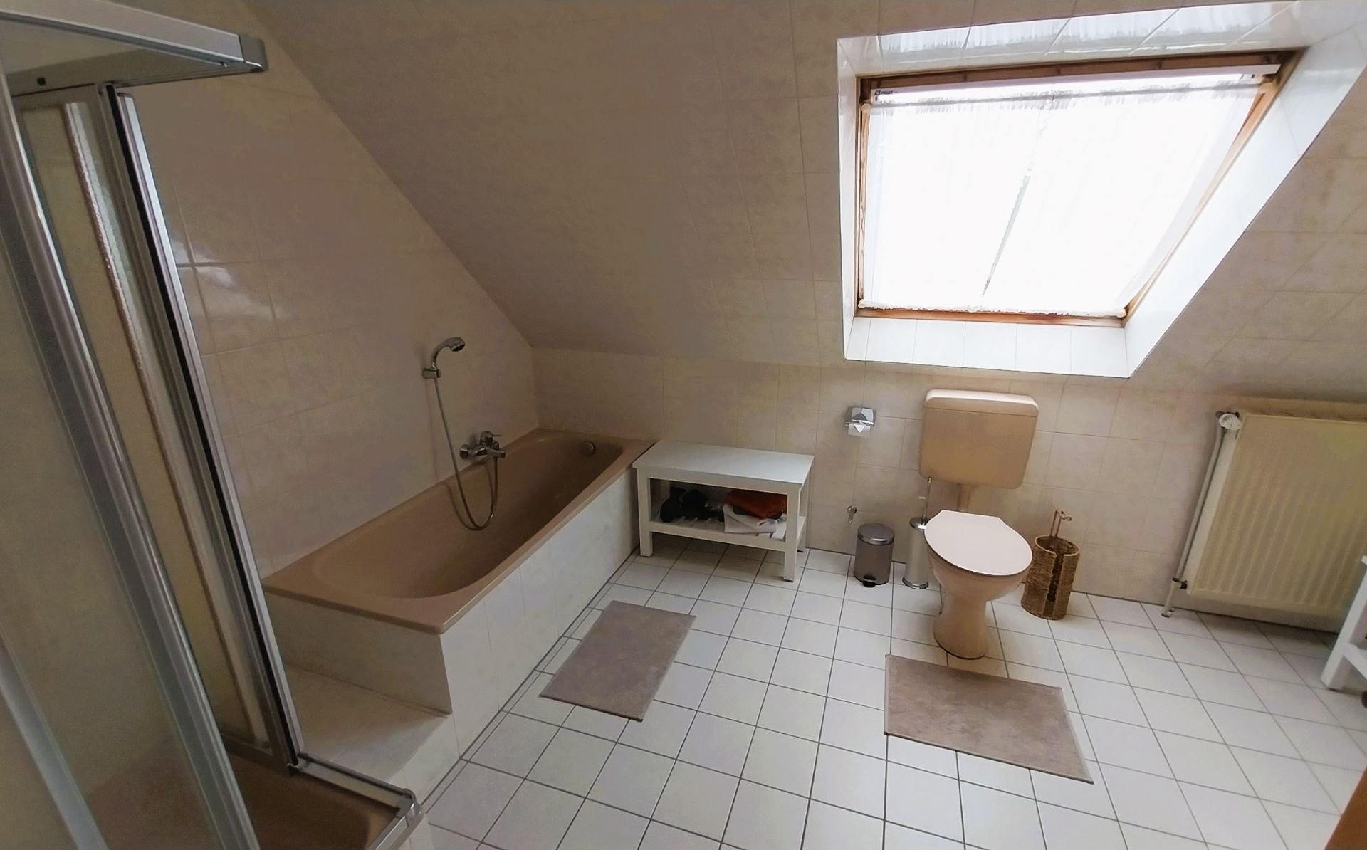 1 Duschbad mit Badewanne, WC, Waschbecken und Fön