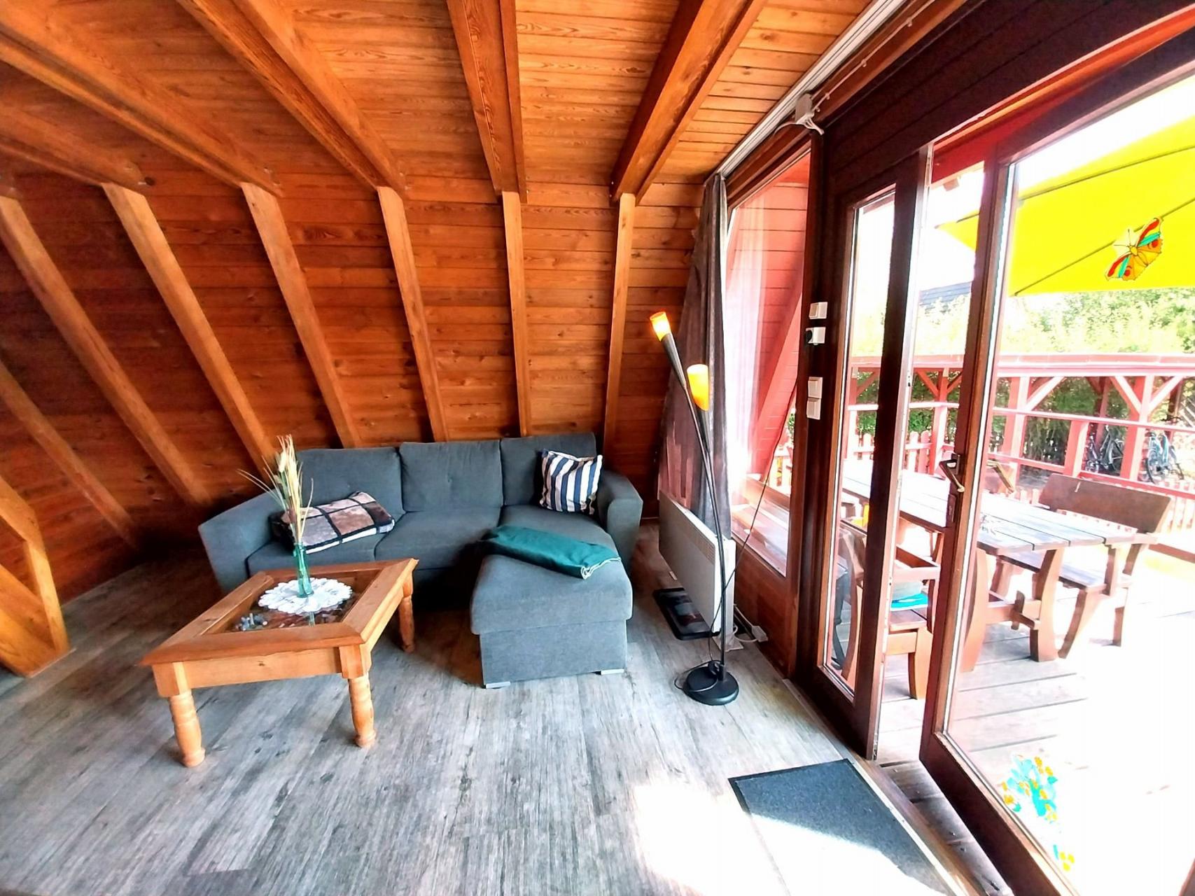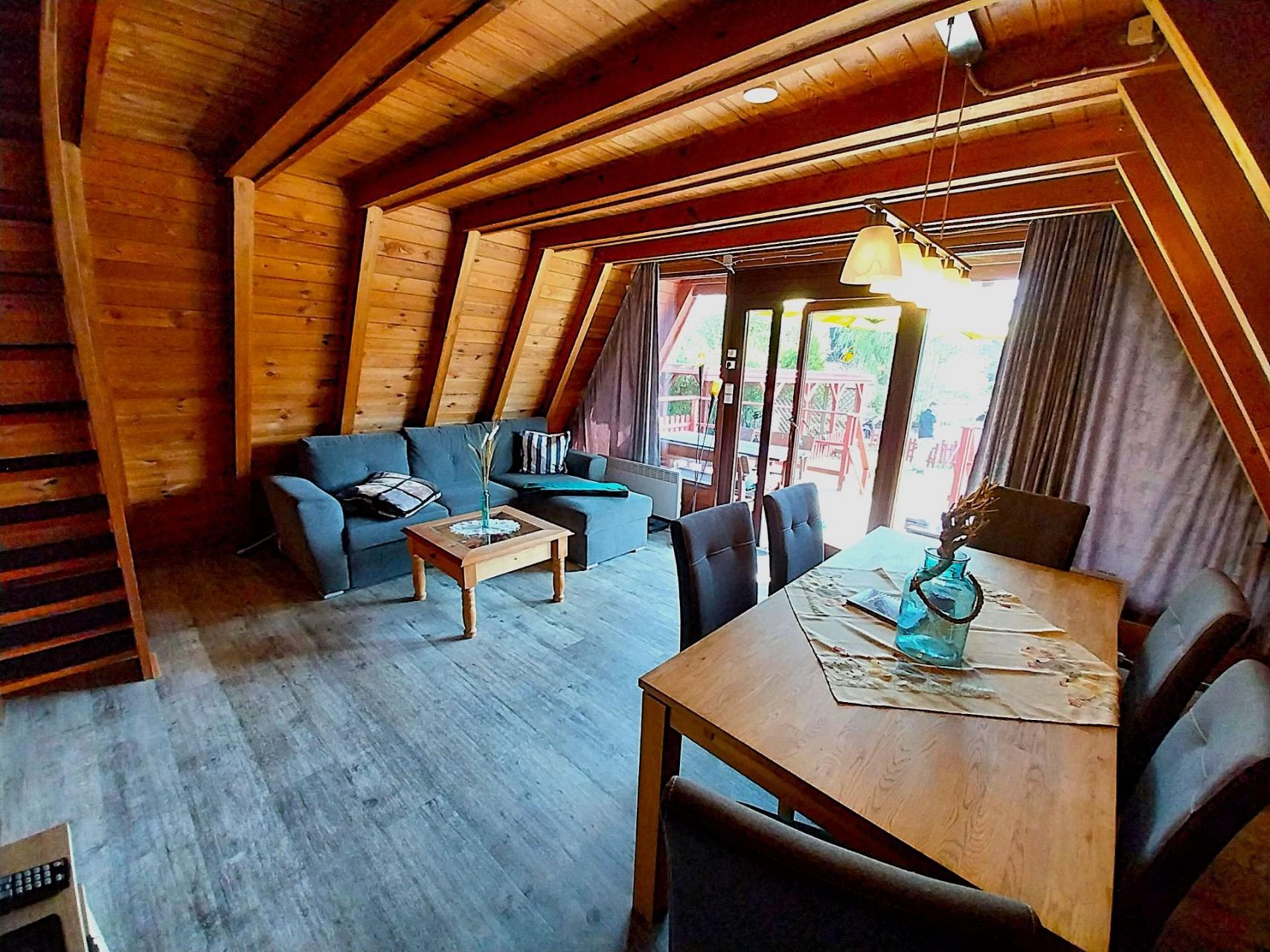 Im Wohnbereich finden Sie ein bequemes Sofa, Esstisch für 6 Personen, kleine HiFi-Anlage und Zugang zur Veranda mit herrlichem Ausblick.
