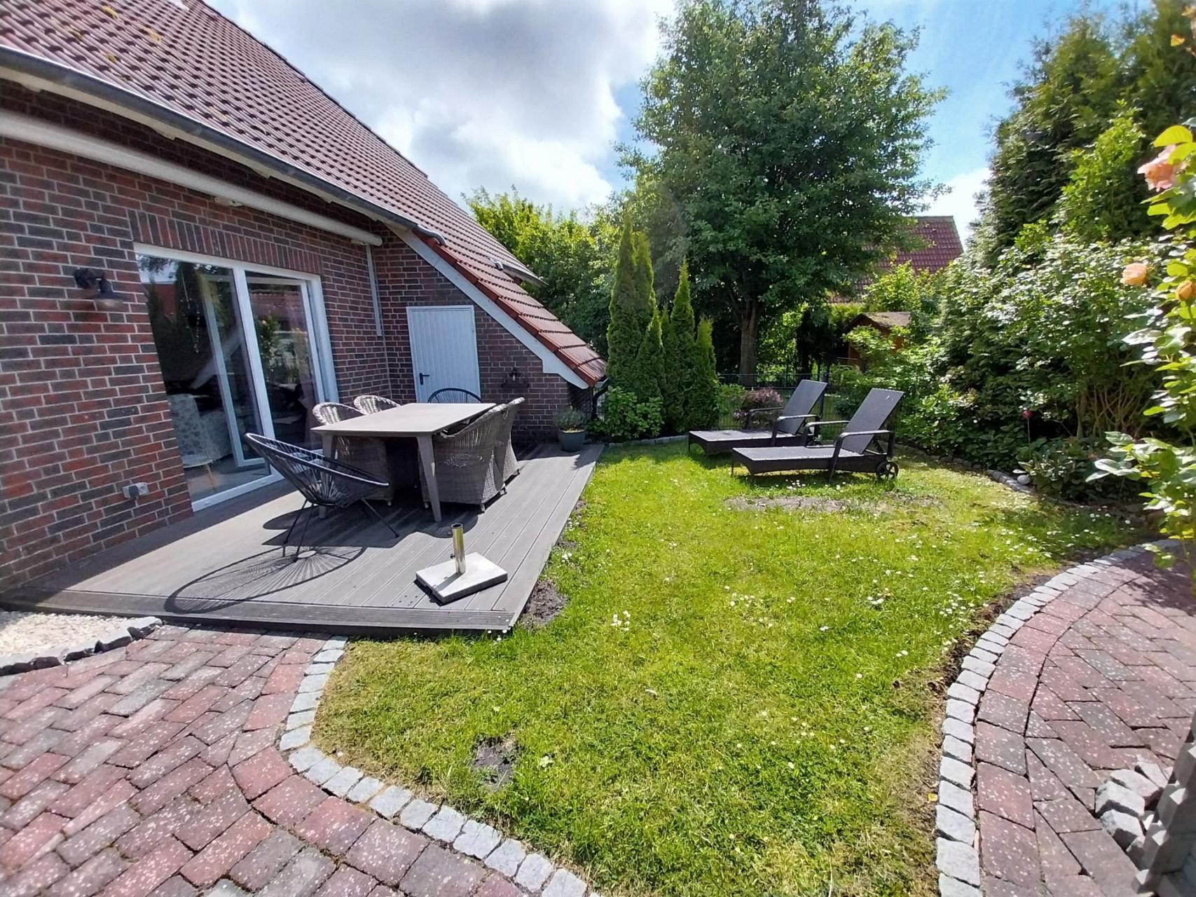 Die gemütliche Doppelhaushälfte ist im Landhausstil eingerichtet und liegt in ruhiger Lage in Deichnähe.