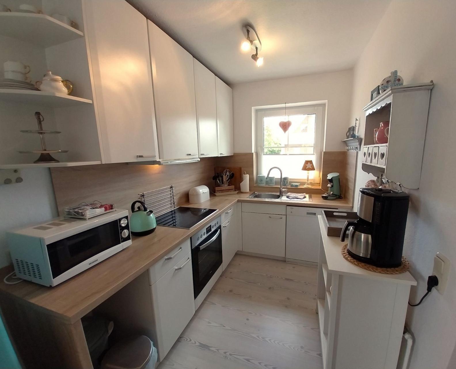 Im Erdgeschoss befindet sich die offene, voll ausgestattete Küche mit viel Stauraum. Hier finden Sie: