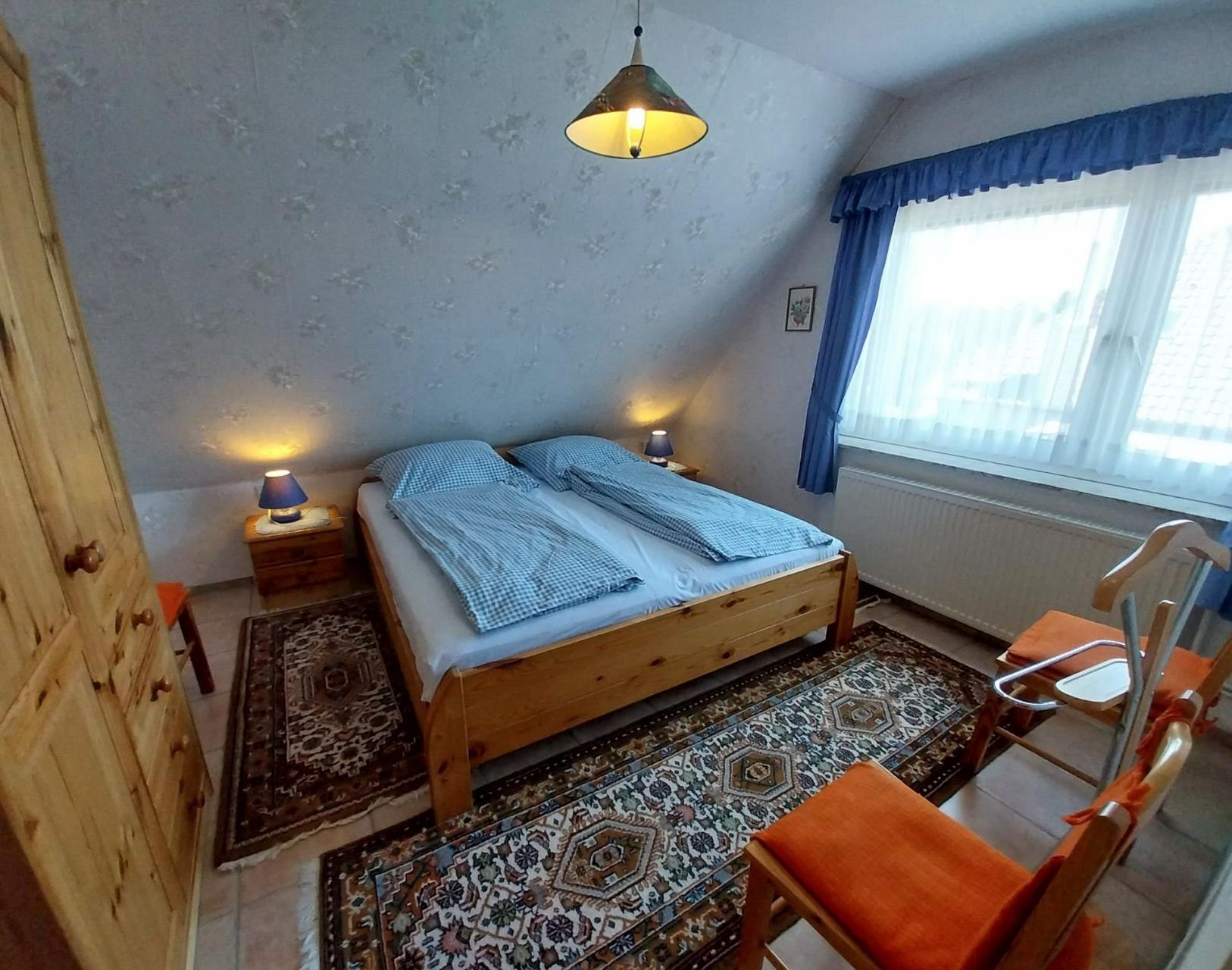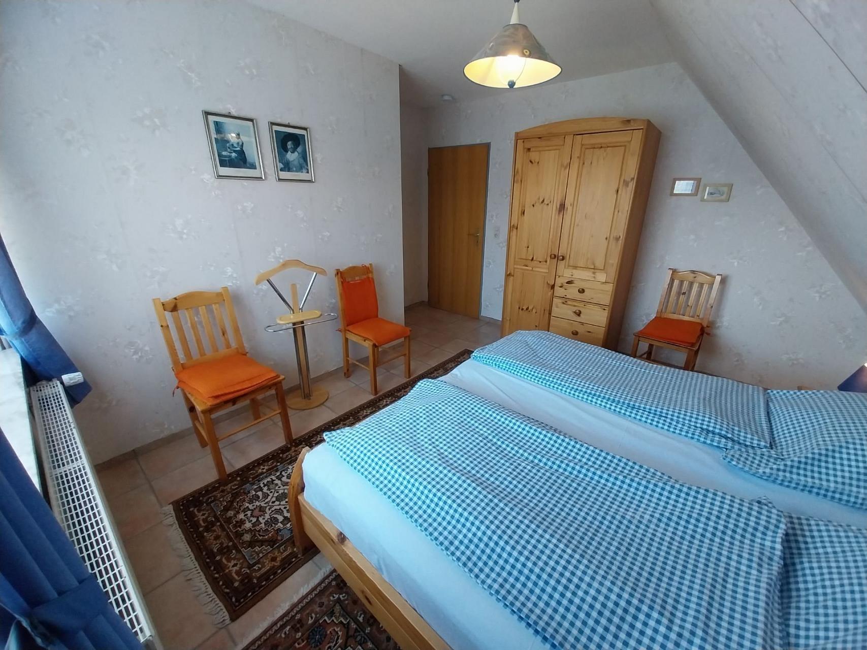 Komfortablem Doppelbett (180 x 200 cm), Nachtschränkchen, Kleiderschrank, Herrendiener und kuscheliger Bettwäsche, die für einen erholsamen Schlaf sorgt.