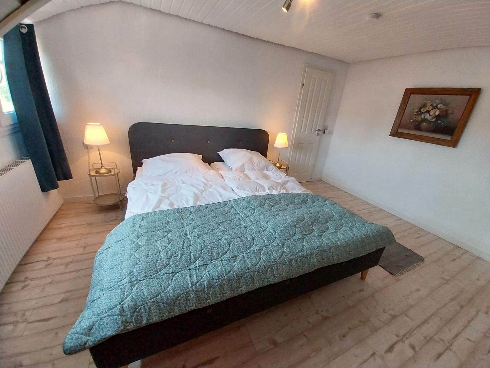 Das separate großzügige Schlafzimmer verfügt über einen Kleiderschrank und zwei Schlafgelegenheiten für bis zu 3 Personen: Ein Doppelbett (2 Matratzen: 90 x 200 cm) und ein Einzelbett zum ausziehen (IKEA, 80 x 200 cm).