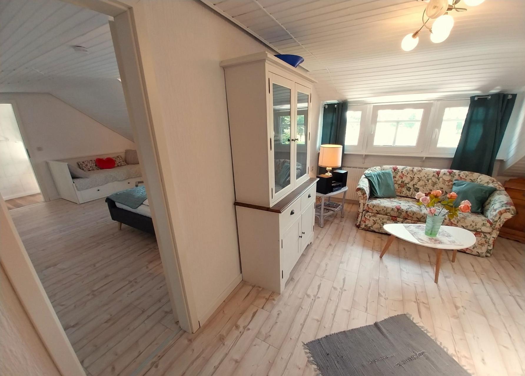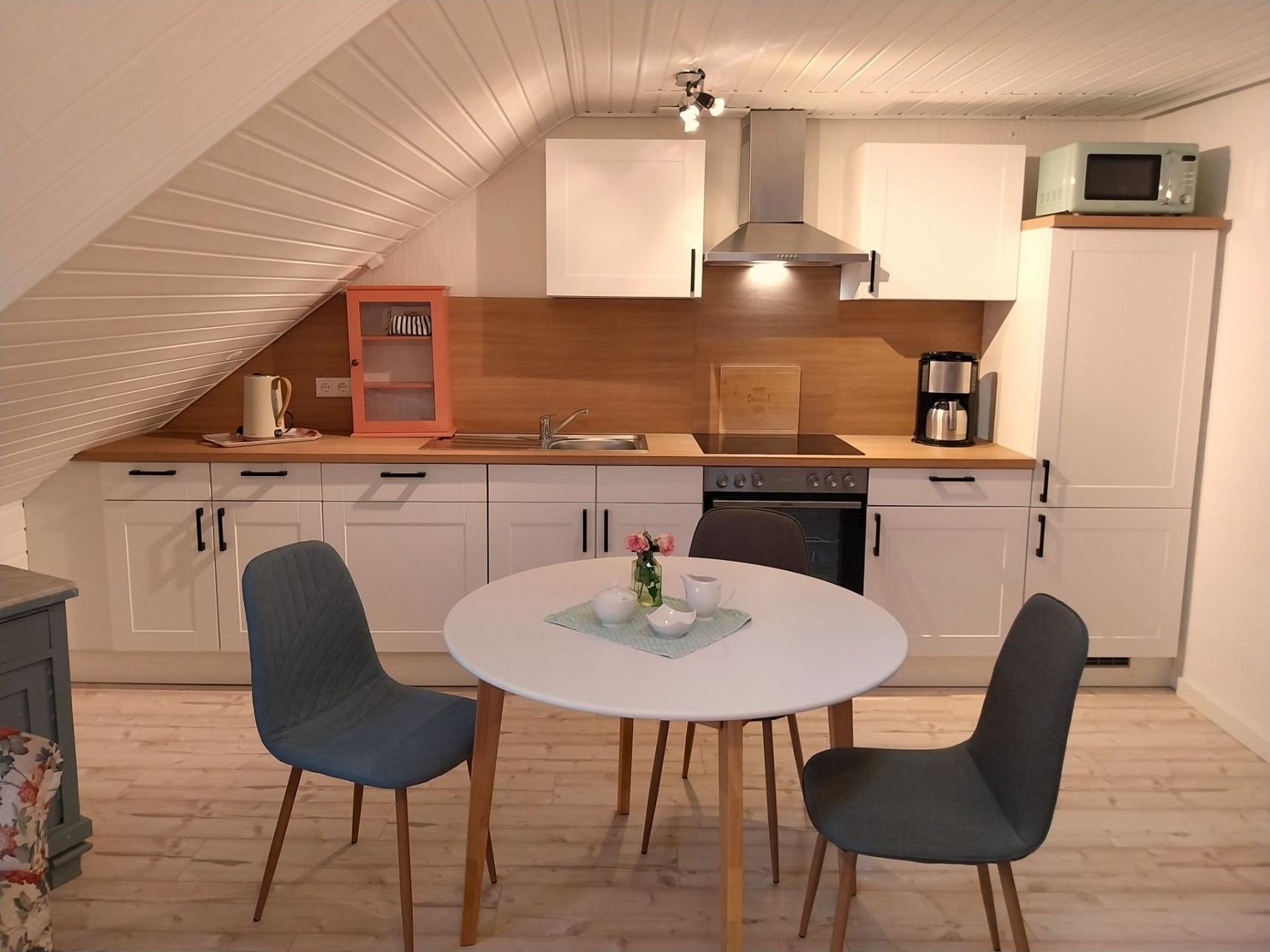 Die gemütliche Dachgeschoß-Wohnung wurde Ende 2024 renoviert und ist im Landhausstil eingerichtet.