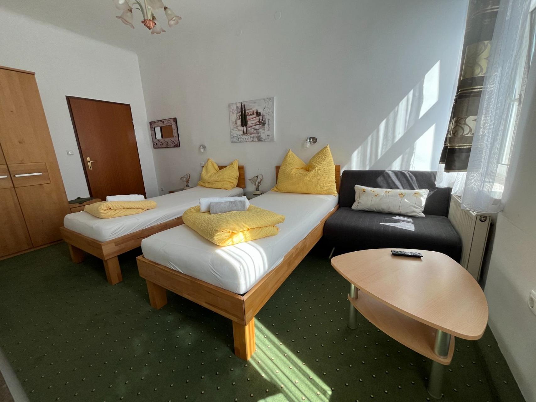 Ihr Studio Nr. 106 im 1. Stock ist ausgestattet mit 2 Einzelbetten sowie eine bequeme Schlafcouch für die 3. Person, zusätzlich Schreibtisch, TV, WLAN, Duschbad/WC und kleiner Küche. Das Studio befindet sich auf der Straßenseite zur Mariazellerstraße. Die schalldichten Fenster sorgen für eine angenehme Nachtruhe.