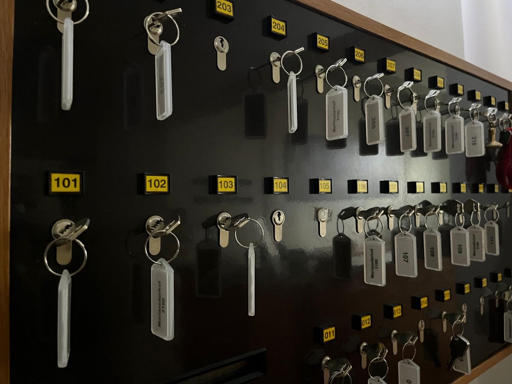 Das besonders große und geräumige Einzelzimmer Nr. 112 im 1. Stock mit einem Vorraum ist ausgestattet mit einem Einzelbett, Schreibtisch, TV, WLAN, Duschbad/WC sowie einer Miniküche. Das Pensionszimmer befindet sich zur verkehrberuhigten Seitenstraße, Die schalldichten Fenster sorgen zusätzlich für eine angenehme Nachtruhe.