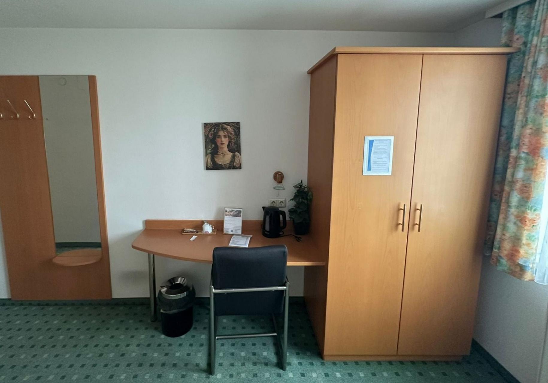 Ihr Einzelzimmer Nr. 203 im 2. Stock ist ausgestattet mit einem Einzelbett, Schreibtisch, Kühlschrank mit Gefrierfach, Wasserkocher, TV, WLAN, Duschbad/WC.