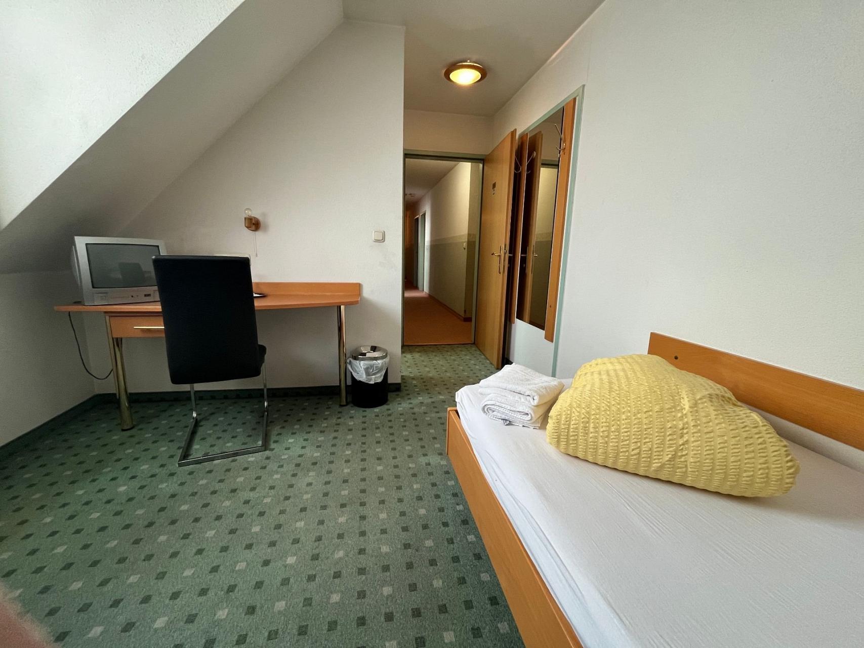 Ihr Einzelzimmer Nr. 205 im 2. Stock ist ausgestattet mit einem Einzelbett, Couch, Schreibtisch, TV, WLAN, Kühlschrank, Duschbad/WC.