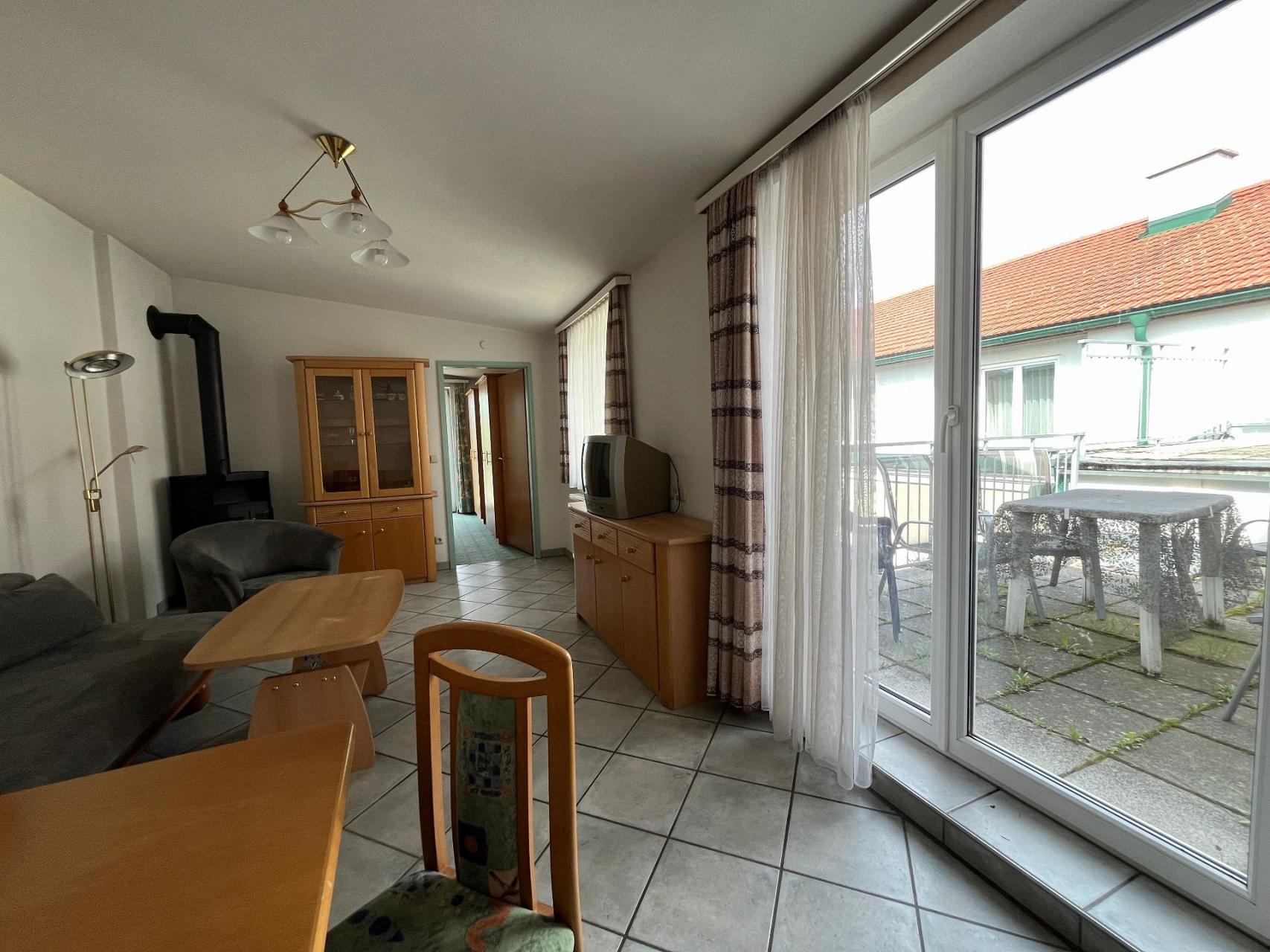 | Der von 3 Seiten geschützte Innenhof ist mit Terassenmöbeln zum gemütlichen Verweilen und zur gemeinschaftlichen Benutzung ausgestattet. |