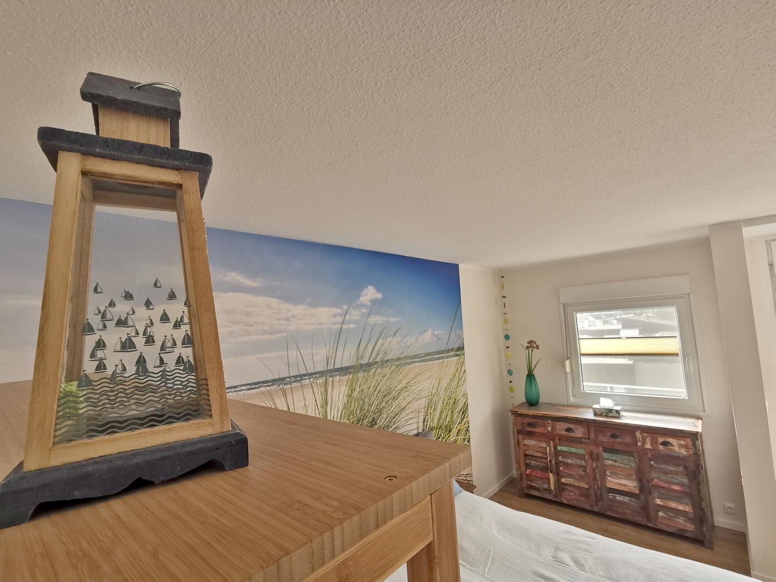 Die Wohnung verfügt über kostenloses WLAN, einen großen Flachbildschirm, großes Polsterbett 180x200, einen großen Esstisch für 4 Personen und einem Strandkorb am Strand von Horumersiel.