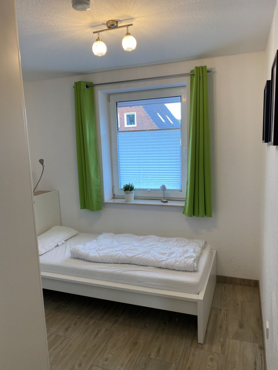 Für ungestörte Träume sorgen Verdunklungsvorhänge in den Schlafzimmern.