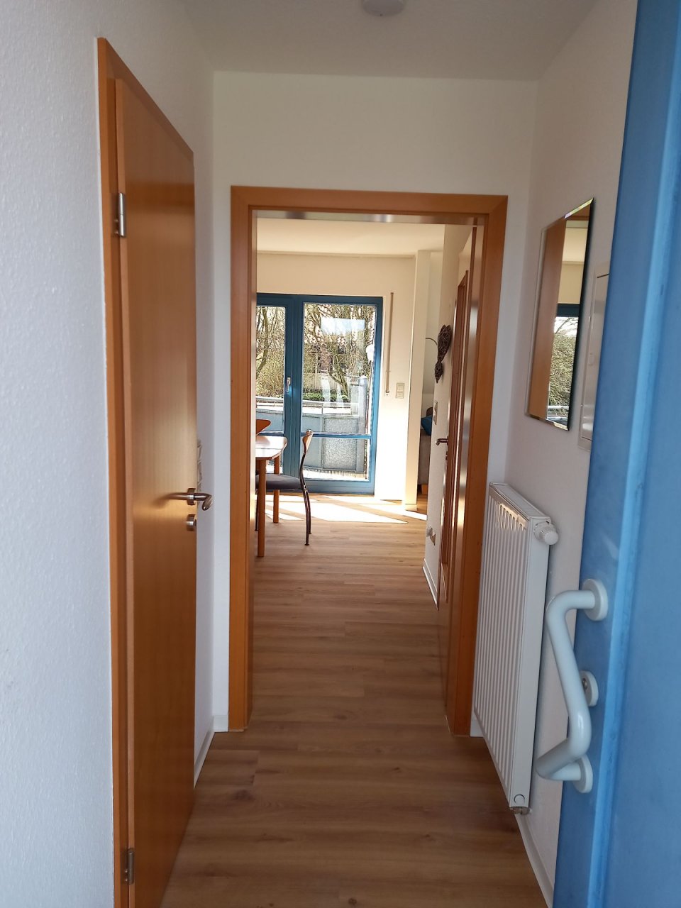 Unsere Wohnung 9, liegt in der zweiten Etage des Apartmenthauses im Strandweg 5 - direkt gegenüber dem Kursaal. Auf knapp 50m² und zwei Etagen bietet diese Ferienwohnung Platz für 4 Personen. Im ersten Schlafzimmer befindet sich ein Kleiderschrank, zudem ein Doppelbett. Ein zweites Schlafzimmer mit zwei getrennten Betten befindet sich im Dachgeschoss .Im Wohnbereich befindet sich eine Eck-Couch so wie eine Anbauwand mit einem passendem Flachbildfernseher und einem DVD-Player.Die kompakte Küche ist komplett ausgestattet mit 2 Kochplatten, Wasserkocher, Mikrowelle, und einer Kaffeemaschine (Filter). Am Esstisch finden 4 Personen Platz. Aus diesem Bereich geht es dann auf den Balkon. Das Badezimmer ist ausgestattet mit Fenster, Dusche, WC, Waschbecken, Spiegel und einer Ablage