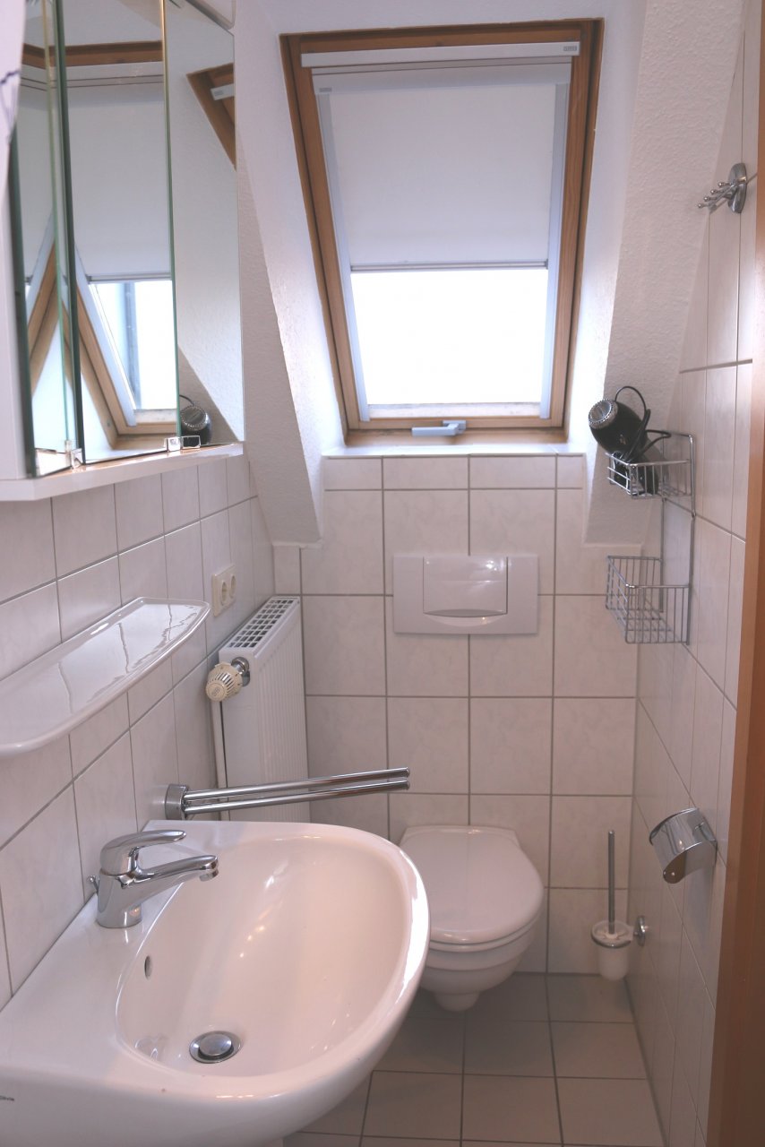 Unsere Ferienwohung 10 befindet sich in der 2. Etage im Strandweg 5. Die Ferienwohnung ist aufgeteilt auf zwei Etagen. In der Eingangsetage befindet sich das Schlafzimmer mit Doppelbett und Kleiderschrank. Gegenüber das Badezimmer mit Dusche, WC, Waschbecken mit einem Spiegel. Gehen wir in der Wohnung weiter, kommen wir ins Wohn/Esszimmer mit einer Einbauküche ( komplett eingerichtet ). Hier befindet sich auch der Ausgang zum Balkon. Im Obergeschoss der Ferienwohnung befindet sich ein weiteres Schlafzimmer mit einem Doppelbett.